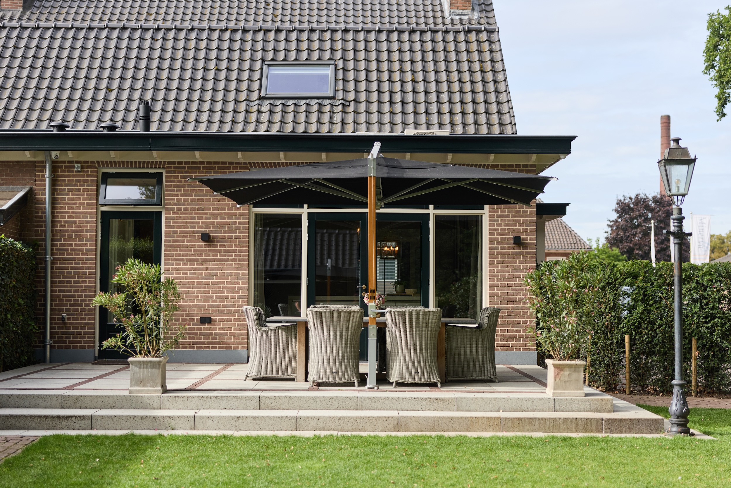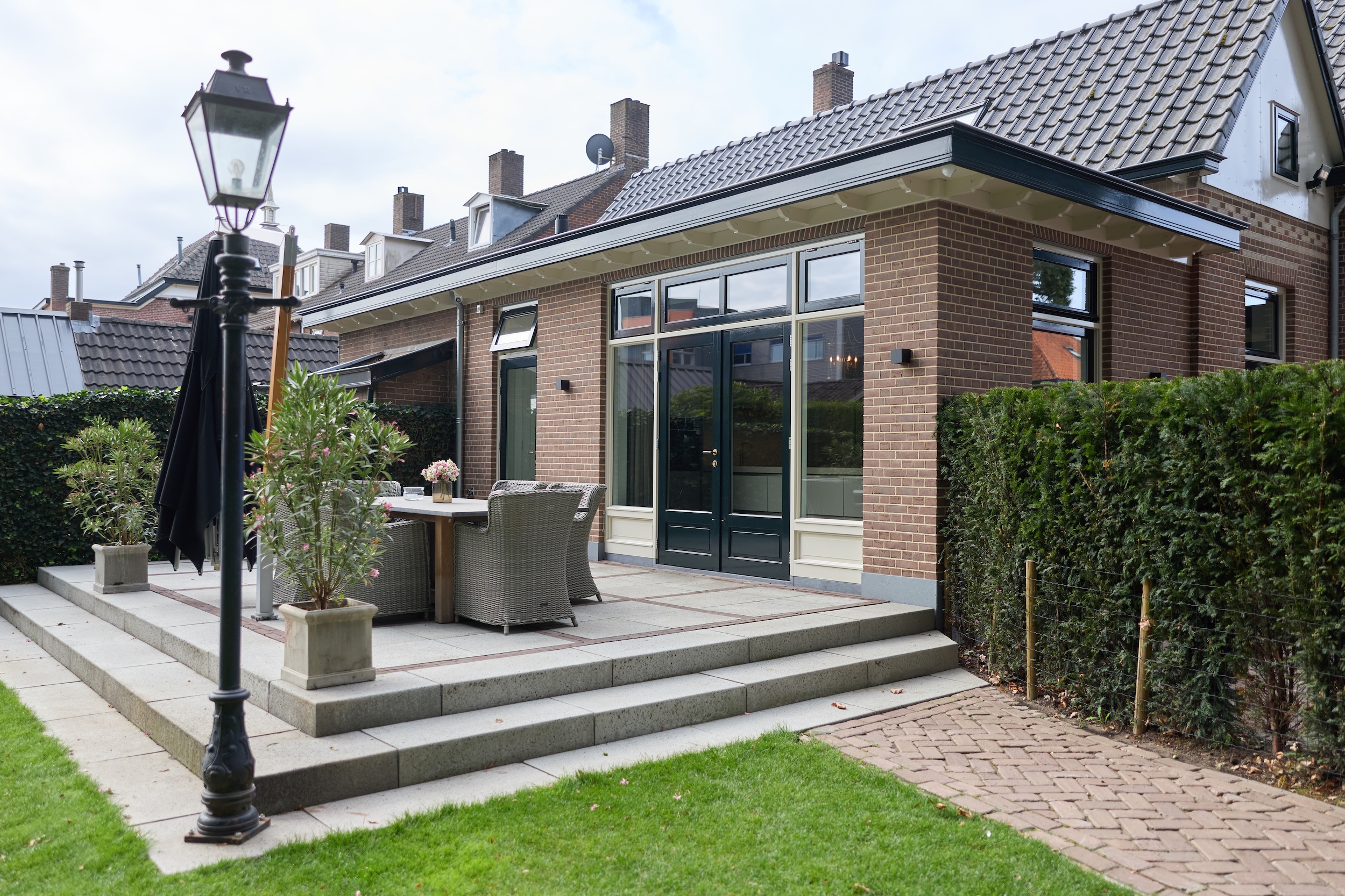 Grote tuingevel: royale pui naar het terras voor extra daglicht en verbinding met de tuin.